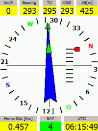 durch Fingerbedienbarkeit ist die Kurseingabe etwas aufwändig, beispielsweise bei 180° sind 180 Klicks oder längeres Halten des Buttons nötig, da keine Tastatur- Eingabe aber eben auch mit Handschuh möglich