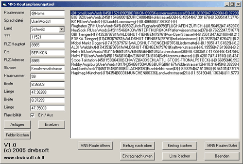 Mit Hilfe des Tools ist es einfach möglich die Routenpunkte auszulesen, zu ändern, hinzuzufügen usw. eine tolle Hilfe wenn es darum geht Routen für den MN5 zu erstellen oder zu ändern.