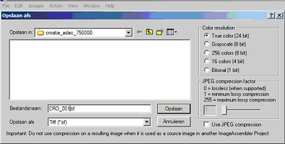 Karte jetzt als *.tif mit 256 Farben abspeichern. Mehr Farben und eine hoehere Aufloesung erzeugen unnoetig grosse Dateien und erhoehen nicht die Detailtreue.