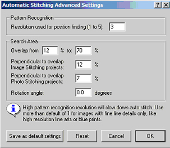 Spart also nicht an den Scans. PanaVue sucht in dem Bereich von 12% bis 70% (Einstellung der Options) nach Uebereinstimmungen. Unschaerfen z.B. im Randbereich spielen daher keine Rolle.