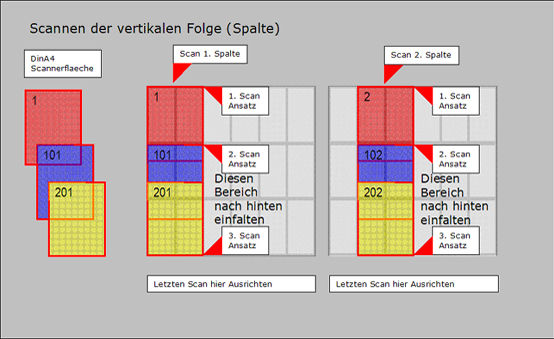 Entsprechend ist bei den Scans der vertikalen Richtung vorzugehen. Der 1. Scan wird oben ausgerichtet, der letzte Scan unten.