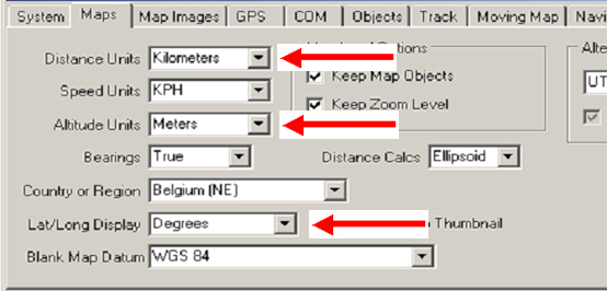 Das mittlere Bild zeigt noch einmal deutlich die wichtigste Aenderung fuer Dezimalgrad und Kilometer im Register Maps.
