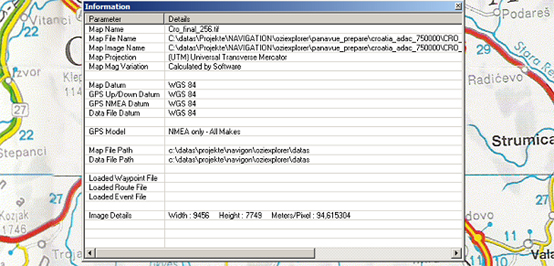 Im rechten Bild seht Ihr eine Infoliste mit den wichtigsten Einstellungen von OziExplorer. Diese koennt Ihr ueber den Info Button in der Kopfzeile aufrufen.