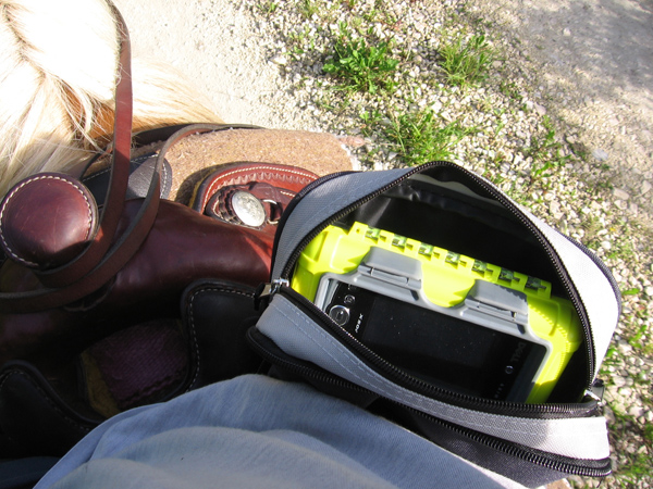 Fürs erste nahm ich die Box in einer Bauchtasche mit. Auch nach Trab und Galopp verwackelt nix an der Box. Selbst die von mir als zu leicht aufgehend bemängelten Verschlüsse haben sich nicht gelöst – TOP!