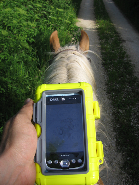 DELL in Box, Box auf Fahrrad, und auf geht´s! Doch wohin mit der Maus? Hab mittels Klettband und der beiden Ösen auf der Box schnell eine Lösung fürs Erste gefunden. Otterbox stellt auch Boxen für GPS-Mäuse her – sollte man sich auf Dauer auch zulegen.