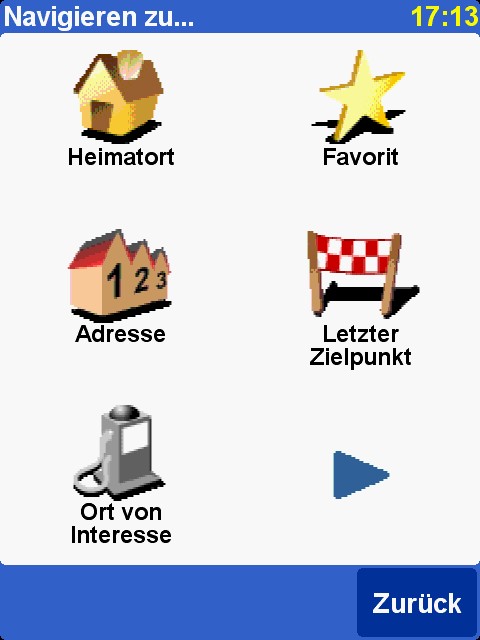 Mit einem einzigen Klick erreicht man die ersten 5 Funktionen im Hauptmenü, und auch das Weiterblättern ist mit großen Buttons problemlos ohne Stylus möglich.