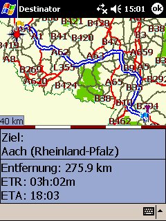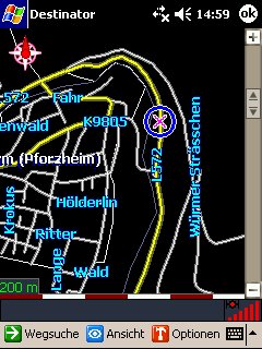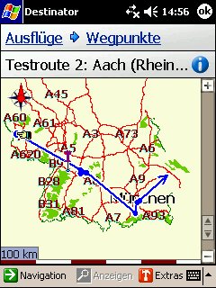 Überhaupt ist intuitive Bedienung nicht die Stärke des Destinator3, so ist beispielsweise der Wechsel zwischen Navigationsmodus und Routenplanermodus nur über 2 Menüpunkte – Optionen/Route – zu erreichen.
