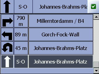 In der Wegbeschreibung werden die nacheinander zu befahrenden Strassen mit Angabe der Weglänge und der nächsten Fahrtrichtung aufgelistet.