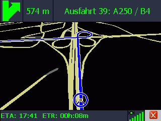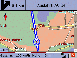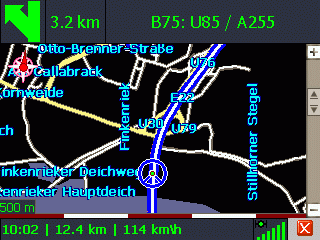 Schon ab der ersten Zoomstufe hat man die Möglichkeit vorausschauend zu fahren. Man erkennt jederzeit auf der Karte, in welcher Richtung die Fahrt als nächstes fortgesetzt wird.