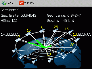 Gut gelungen ist die Darstellung des GPS Empfangs.