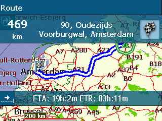 Die angezeigten Kartenausschnitte wurden gegenüber der Vorversion auch farblich überarbeitet. Sie sind nicht mehr so bunt, und wirken dadurch noch aufgeräumter und übersichtlicher. Die berechnete Route wird jetzt in der Karte Blau-Weiß dargestellt und ist dadurch besser erkennbar. Richtungsänderungen sind darin als kleine, grüne Pfeile kenntlich gemacht.