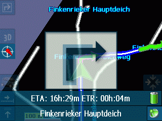 Auf der Seite Einstellungen, unter Opt. Hinweise, kann die Option Symbole ausgewählt werden. Vor jeder Richtungsänderung werden dann Richtungspfeile eingeblendet. Im Gegensatz zur Vorversion werden diese nicht mehr formatfüllend, sondern in einem in Bildschirmmitte zentriertem Rechteck dargestellt.