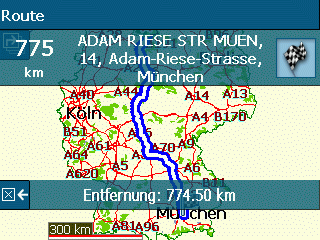 Nach dem ein Ziel eingegeben wurde, wird die Route berechnet. 1. Beispiel: 2. Beispiel: Schon im Destinator 3 waren die Routenberechnungszeiten kurz. Im Destinator ND konnten die Berechnungszeiten nochmals reduziert werden. |