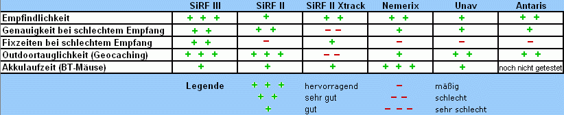 Anmerkungen: Die Ungenauigkeiten bei schlechtem Empfang sind höher als bei SiRF II und III , auch im KFZ-Einsatz