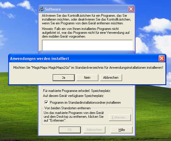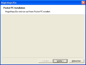Wie schon erwähnt ist diese Software nur mit MagicMaps-Karten nutzbar. Es macht nur Sinn diese zu installieren, wenn man eines dieser Kartenwerke besitzt. Wenn das so ist kann´s auch schon losgehen. Setup aufrufen, wenige male Klicken und schon ist ´s vollbracht. Die Installationsroutine ist denkbar einfach und führt schnell ans Ziel. Beim Setup auf dem PDA erscheint ein Hinweis, dass die Software nicht für das Betriebssystem programmiert wurde blabla – hier einfach nur bestätigen. Laut Hersteller läuft die Software unter PocketPC 2003 (WM2003) – siehe Systemvoraussetzungen.