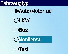 Lautstärke, Helligkeit, Kartendarstellung, Systemeinstellungen und Routingoptionen lassen sich hier einstellen. Es empfiehlt sich am Anfang mal rumzuspielen, bis man die wichtigeren Positionen wie 2D oder 3D-Darstellung oder die Routingoptionen kennt. Als Routingoptionen (Routenpräferenzen) gibt es lediglich 2 Möglichkeiten: Kürzere Zeit oder Kürzere Strecke. Ebenfalls ausschlaggebend für das Routing ist der Fahrzeugtyp: neben Auto, Motorrad, LKW oder BUS gibt es auch den Typ Notdienst oder Taxi. Interessant hierbei ist der Typ Notdienst. In dieser Einstellung leitet das System auch durch gesperrte Straßen, wie z.B. „Nur für Anlieger“ oder Nur für Linienverkehr. Hier bitte die StVO beachten! Neben den gewohnten Einstellungen der Zeit und des Datums gibt es auch den Punkt Sprache. Menü – und Ansagesprache lassen sich hier getrennt einstellen. Wer also in Spanisch geleitet werden möchte aber nur Deutsch lesen kann den wirds freuen: ganze 18 Sprachen für das Menü und 12 für die Ansage einfach multilingual!
