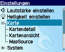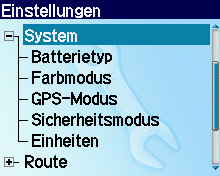 Für den GPS-Modus gibt es lediglich die Punkte Normal, GPS aus oder WAAS/EGNOS.