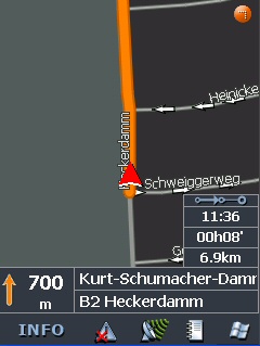 In der Navigationsansicht hat sich optisch erstmal nicht mehr als die Farben/Icons verändert. Allerdings ist schon in der Beta das Kartenscrolling im Vergleich zum MN|4 sehr gut!