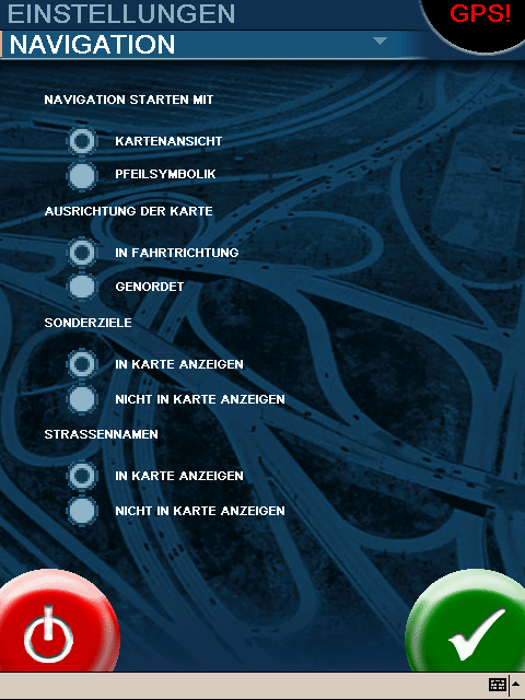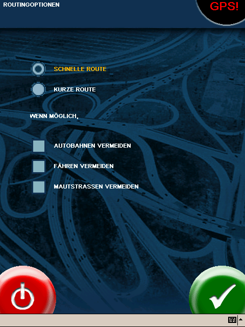 Startmenü, Navigations-Menü und Routenplaner-Menü (bitte auf die Bilder klicken zum vergrößern…)