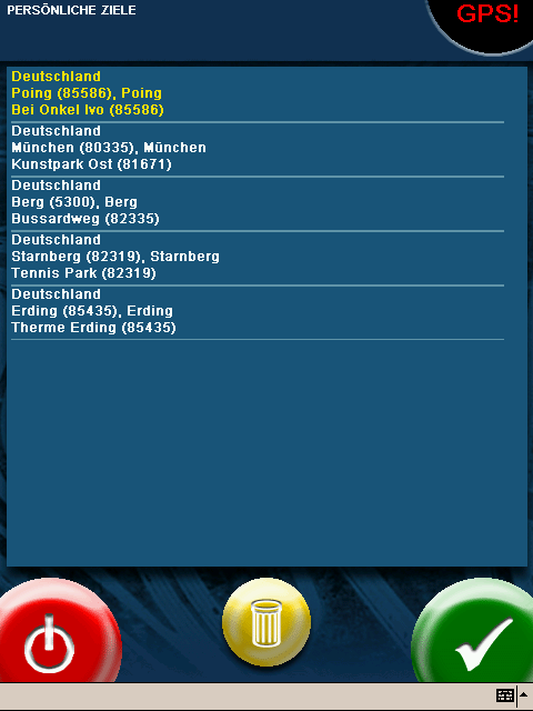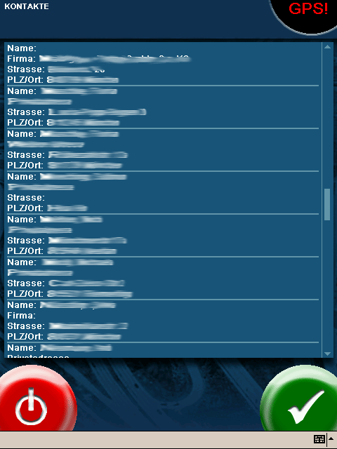 Persönliche Ziele, Outlook-Kontakte, Routenliste