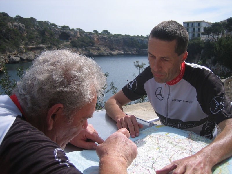 Zwei Pausen haben wir uns heute gegönnt, zuerst in der wunderschönen Bucht von Cala Figueras, dann auf dem Rückweg am Meer in Sa Rapita. Gegessen haben wir bisher aber nur abends, in den Pausen während der Etappe lassen wir nur flüssige Nahrung zu.