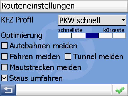 Routenoptionen und Routenberechnung
