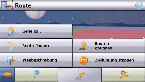 Gut gelöst sind auch die Zugriffe auf die Darstellungsmodi, Kompass und Verkehrslage schnell aus der Karte heraus. Ebenso können hier auf einfache Weise zusätzliche Anwendung-en wie MP3-Player oder Reisführer gestartet werden.