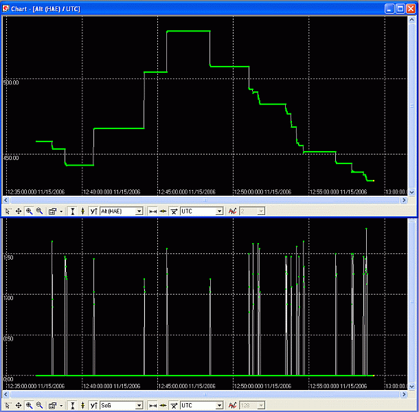 Ergänzung: Nachdem die Beschreibung der Peaks im Vorfeld zur Freigabe des Artikels bereits zu Diskussionen führte, wurden noch einige weitere Tests vorgenommen. So konnte das Abgehen einer Teststrecke über mehrere 100 m geradeaus, im freien Feld mit optimalem Empfang, gleich 2 Dinge bestätigen: die Peaks sind auch hier in gleicher Form vorhanden, die Aussage die von SiRF stammen soll, dass eine Werteaktualisierung nach 200 m erfolgt, ist ebenfalls bestätigt.