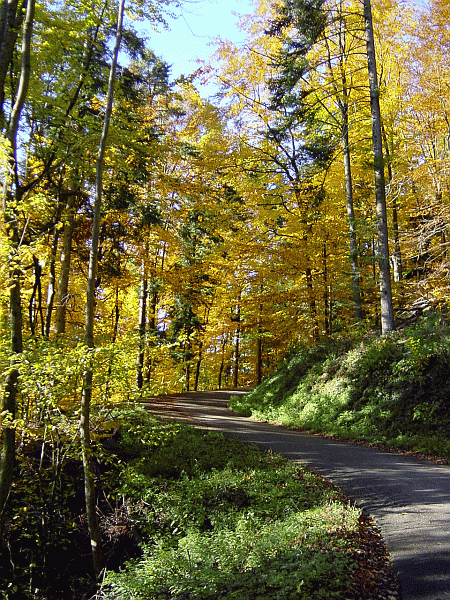 Wie sehen nun die anderen Parameter in einer Grafik aus? Betrachten wir zunächst die Höhe, das macht die anderen Auswertungen etwas klarer. Die Strecke ging vom Parkplatz an der 180 °-Kehre der Straße relativ steil aufwärts bis zu der Stelle, wo der Track den (schwarzen) Weg verlässt (quert im Bild von rechts nach links) = höchster Punkt. Von dort abwärts bis zum Parkplatz zurück.
