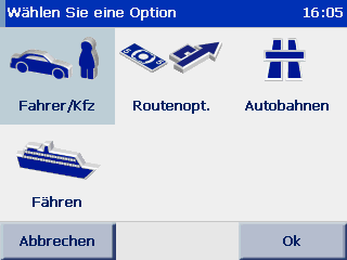 Unter dem Menüpunkt Einstellungen -> Profil lassen sich die Routenoptionen anpassen. Es kann gewählt werden ob die Route streckenoptimiert, zeitoptimiert oder ökonomisch berechnet werden soll. Außerdem besteht die Möglichkeit Autobahnen, sowie Fähren zu sperren.