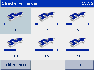 Während der Navigation besteht die Möglichkeit Streckenabschnitte zu vermeiden. Dies ist sinnvoll, wenn es sich auf einer voraus liegenden Strecke staut oder diese aus irgend einem anderen Grund gesperrt ist. Die Navigationssoftware berechnet dann in kürzester Zeit einen Umweg. Die Strecke kann auf eine Länge von 1 km bis zu 20 km vermieden werden.