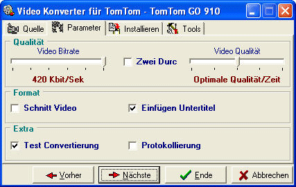 | Man stellt die gewünschten Konvertierungsparameter ein | |