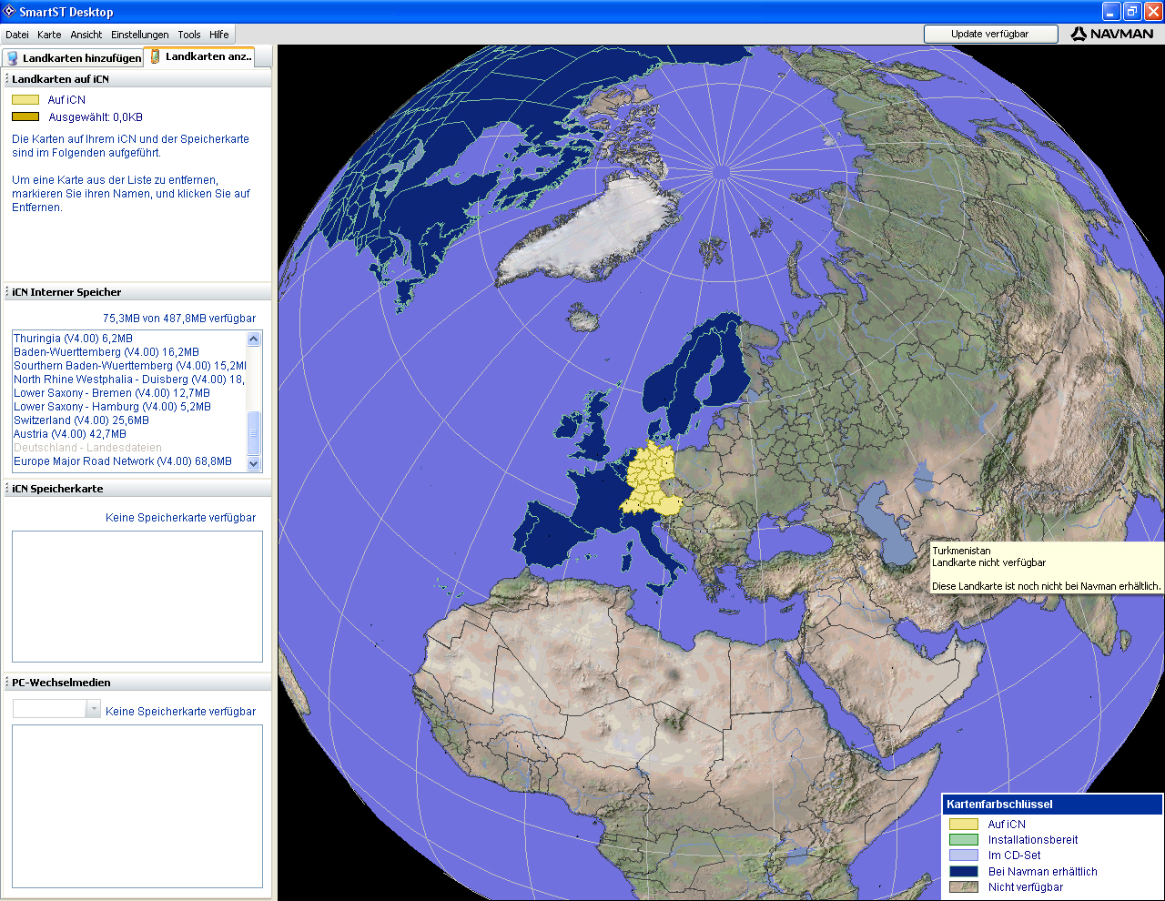 Die Karten stammen aus dem Quartal 4/2005 und sind damit zum jetzigen Zeitpunkt nicht wirklich aktuell. Allerdings muss hier auch gesagt werden das der Navman iCN720 schon einige Zeit im Handel erhältlich ist.
