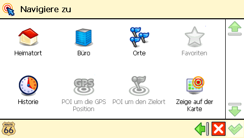 Route66 bietet nachstehende Zieleingabemöglichkeiten: