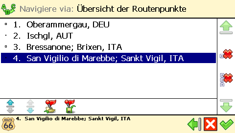 Route66 bietet Möglichkeiten eine Navigation mit beliebig vielen Zwischenzielen zu realisieren: