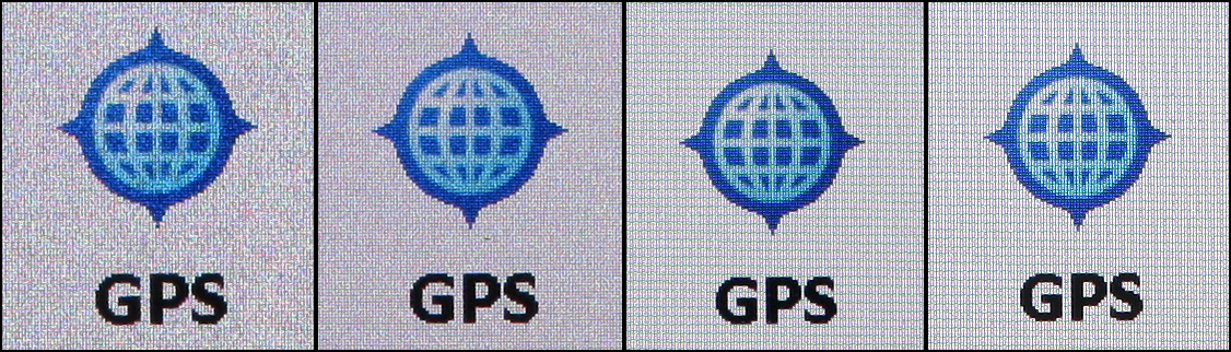 Einen noch deutlicheren Unterschied zwischen den Folienarten erkennt man bei eingeschalteten Gerät und voller Hintergrundbeleuchtung in einem abgedunkelten Raum. Zum Vergleich haben wir hier außerdem eine Non-Reflecting Folie mit sehr schlechten Ableseeigenschaften abgebildet. Während es hier bei den Ultra-Clear Folien keine nennenswerten Unterschiede gibt, zeigen sich diese bei den Non-Reflecting Folien deutlich. Aber auch hier war es nur eine Folie die starke Unterschiede zeigte.