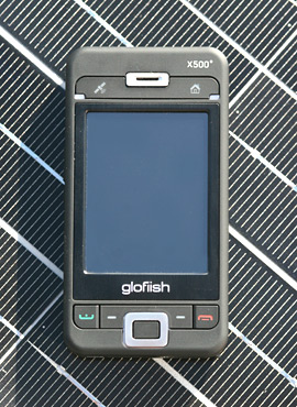Auch die Bauweise des X500+ ist noch immer sehr kompakt. Das komplette Gerät ist mit einer schwarzen, gummierten Oberfläche bezogen. Bereits die Rückseite des X500 bestand aus diesem sehr kratzerunanfälligem Material. Um das Display befindet sich eine schwarze Umrandung aus gebürstetem Stahl. Das silberne glofiish Logo kommt bei dieser Black Edition noch besser zur Geltung und wirkt sehr edel. Ebenfalls in Silber gehalten ist die Umrandung um den Lautsprecher zum Telefonieren. Links und rechts davon befinden sich zwei Tasten, sowie die Statusleuchten des Gerätes. Im unteren Bereich der Front findet man Tasten zum Annehmen und Beenden eines Gespräches und drei Tasten und ein Steuerkreuz zum Bedienen verschiedenster Anwendungen.