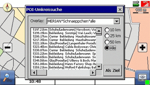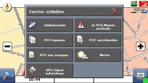 | Menü des POI-Warner | Umkreissuche im POI-Warner |