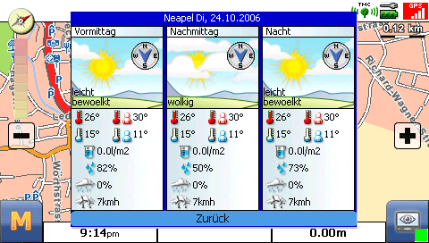| Blitzeranzeige auf der Karte | Anzeige von Wetterdaten |