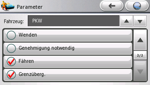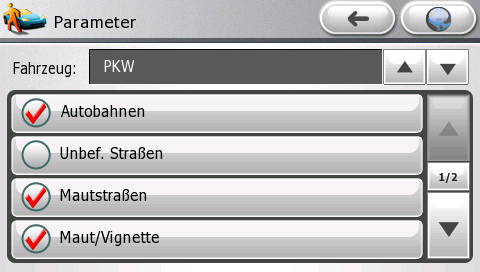 Miomap 2008 bietet veränderbarere Routenoptionen an, welche dem Nutzer die Möglichkeit geben, auf die Art der Streckenführung Einfluss zu nehmen: Neben der Auswahl zwischen PKW, Taxi, Bus, LKW und Notfall kann man auch Fußgänger und Fahrrad anwählen, wobei die Software letzteren unverständlicherweise Mautstraßen erlaubt, aber Fähren verweigert, so dass in diesem Fall der Wunsch nach etwas Feinschliff aufkommt . Ansonsten ließen die möglichen Parameter-Optionen wirklich nichts zu wünschen übrig.
