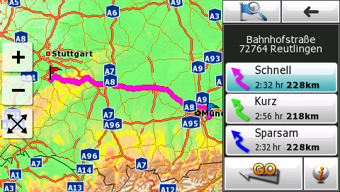 nach Bahnhofstrasse in Reutlingen (ca. 228 km): 4 sek.