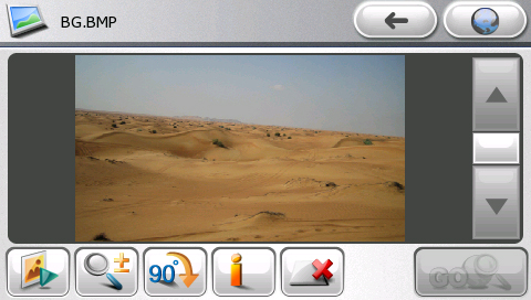 Der Bildbetrachter des C620T ermöglicht es, auf SD Karte oder internem Speicher abgelegte JPG oder BMP Bilddateien anzuzeigen. Das linke Bild zeigt die Sichtung gespeicherter Screen- shots.