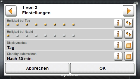 Erfreulicherweise bietet Navigon jetzt auch eine automatische Umschaltung der Tag/Nachtansicht, welche nach GPS zeitgenau von der Tag- zur Nachtansicht wechselt. Die praktische Eigenschaft früherer MN Versionen, die Display-Helligkeit für beide Modi separat einstellen zu können, wurde auch bei MN|7 glücklicherweise beibehalten. Batteriesparend wirkt sich der ebenfalls neue, automatische Standby Modus aus, welcher auch die Hintergrundbeleuchtung ausschaltet. Keine neue Idee , aber dennoch sinnvoll.