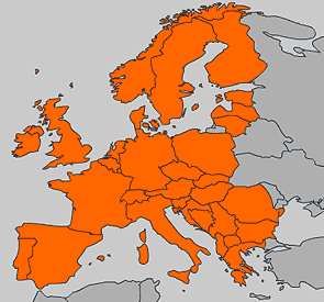 Albanien, Andorra, Belgien, Bosnien-Herzegovina, Bulgarien, Dänemark, Deutschland, Estland, Finnland, Frankreich, Griechenland, Groß-Britannien, Italien, Kroatien, Lettland, Liechtenstein, Litauen, Luxemburg, Mazedonien, Monte Carlo, Montenegro, Niederlande, Norwegen, Österreich, Polen, Portugal, Republik Irland, Rumänien, San Marino, Schweden, Schweiz, Serbien, Slovakei, Slovenien, Spanien, Tschechien, Ungarn, Vatika, Weißrussland.