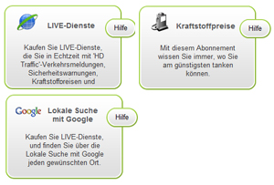 Neue Symbole unter Karten, Verkehrsinfos, Stimmen usw. hinzufügen ermöglichen den Kauft von LIVE Services.