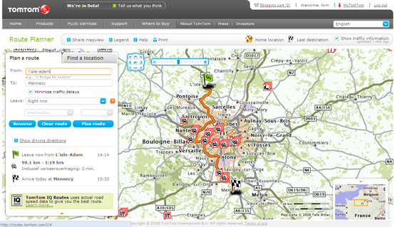 TomTom stellt einen Online Routenplaner auf Basis der eigenen Berechnungsalgorithmen wie IQ Routes und HD Traffic vor. Die Webanwendung befindet sich zur Zeit noch in einer geschlossenen BETA Phase in der eine ausgewählte Gruppe an Nutzern das System ausgiebig testet.
