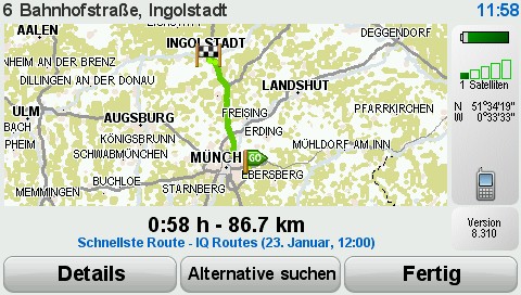 nach Bahnhofstrasse in Ingolstadt (ca. 86 km): 5 Sek., Fahrtzeit 57 Minuten