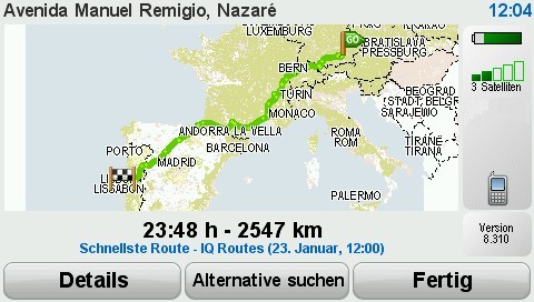 nach Avenida Manuel Remigio in Nazarè/Portugal (ca. 2547 km): 141 Sek., Fahrtzeit 23 Stunden 51 Minuten