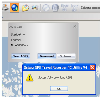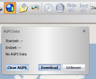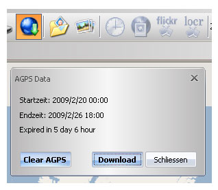 Der GPS-Empfänger hat die Möglichkeit extern AGPS-Daten zugeführt zu bekommen. Dazu kann die mitgelieferte PC-Software verwendet werden. Bei AGPS wird die Himmelsstellung der Satelliten für die nähere Zukunft im Empfänger hinterlegt.
