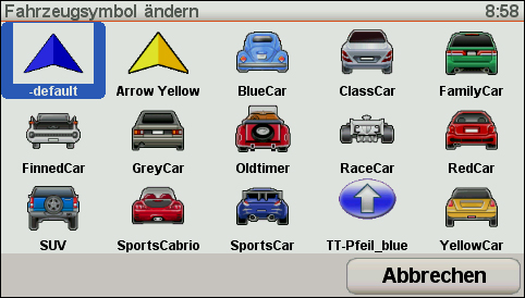 Das Fahrzeugsymbol, das die gegenwärtige Position des Fahrzeugs auf der Karte anzeigt, kann übrigens durch ein anderes Symboloder sogar durch eine eigene Grafik ersetzt werden. Auch für dasAussehen der Karte, findet man unzählige Farbvarianten mittels TomTomHOME auf der TomTom Internetseite.